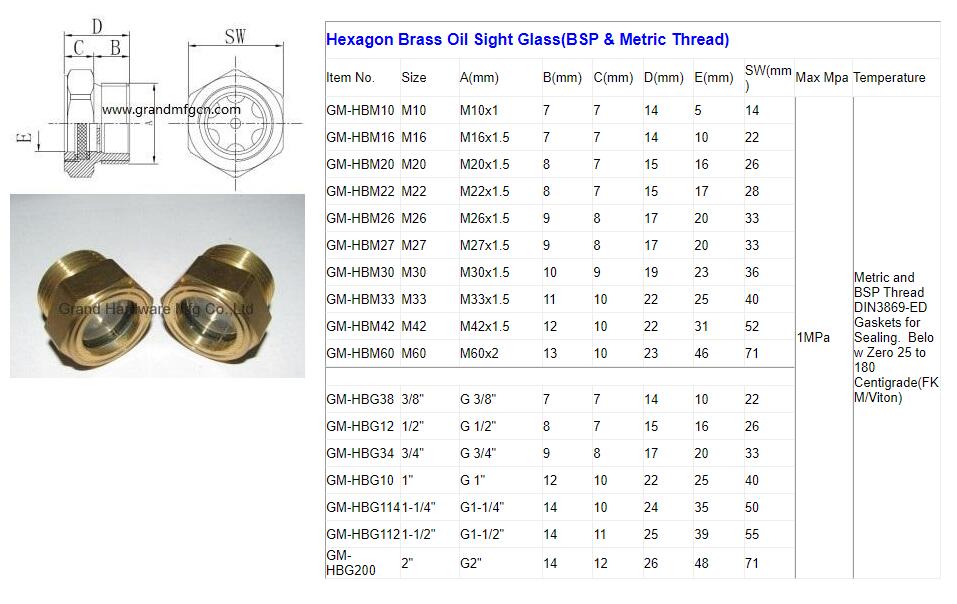 • Brass Oil level sight glass